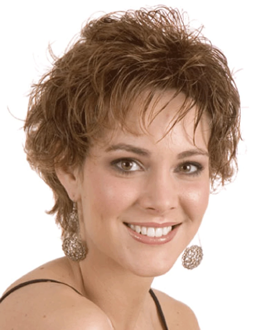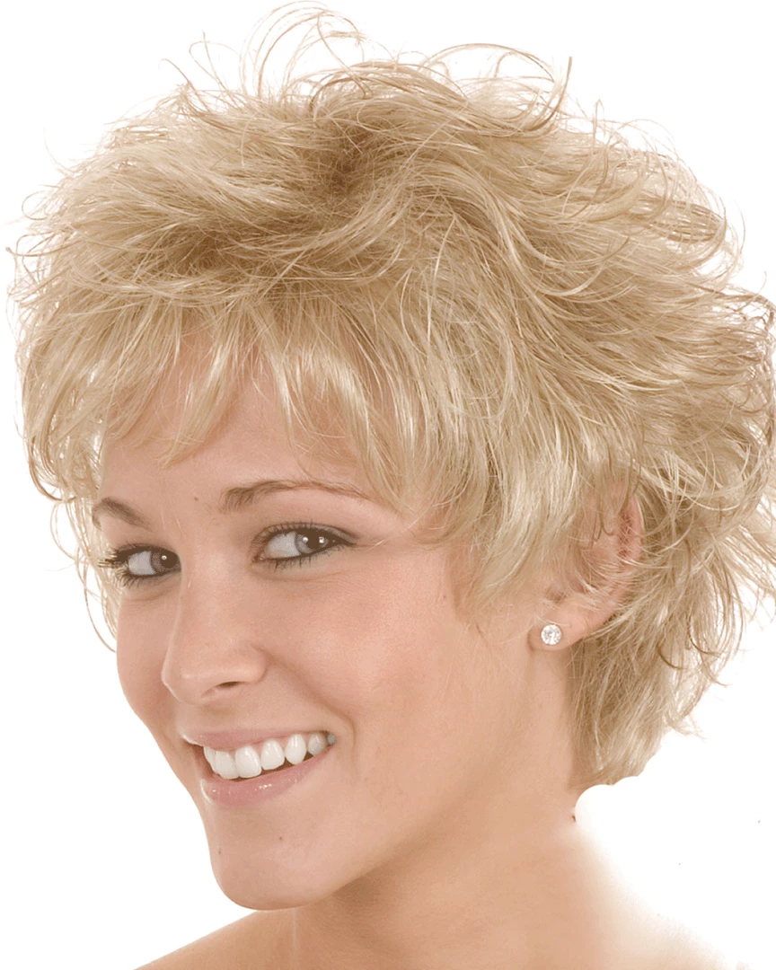 Candice by Aspen. The shagginess and piecing of our Candice wig gives it a whimsical appeal, while the short bangs and face-framing layers add structure and define your cheekbones for a slimming effect.