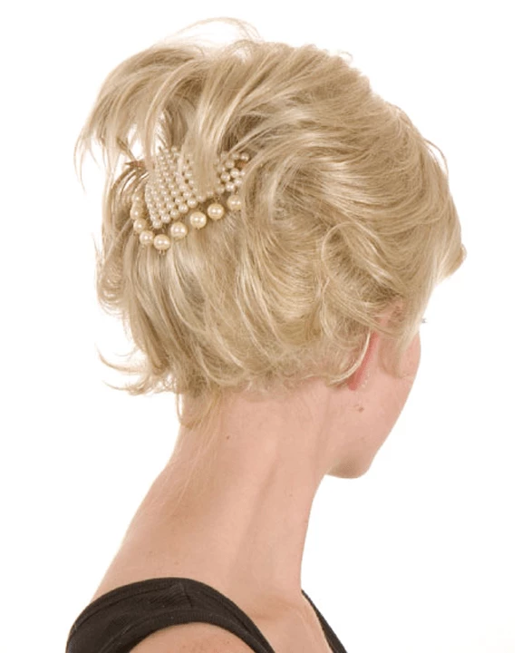Geni by Aspen has a formal look, with a stretchable cap with an up-do style.