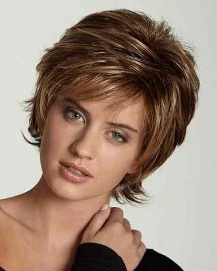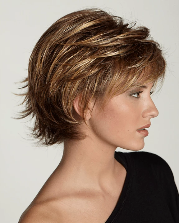 Jessica by Aspen has medium length hair. Natural wind blown flip style. Natural look with more volume. Very easy to syle.