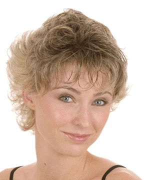 Sarah by Aspen has different curl lengths & a natural looking top.