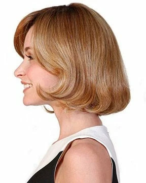 Miss Macchiato by Belle Tress is a short flirty bob with curly ends. For a bright side lob, wear one side with a pin or tuck behind your ear. Beautiful brow length bangs can be worn side-swept or straight. Wear this flipped-out bob because we hear that vintage mod is modern again.