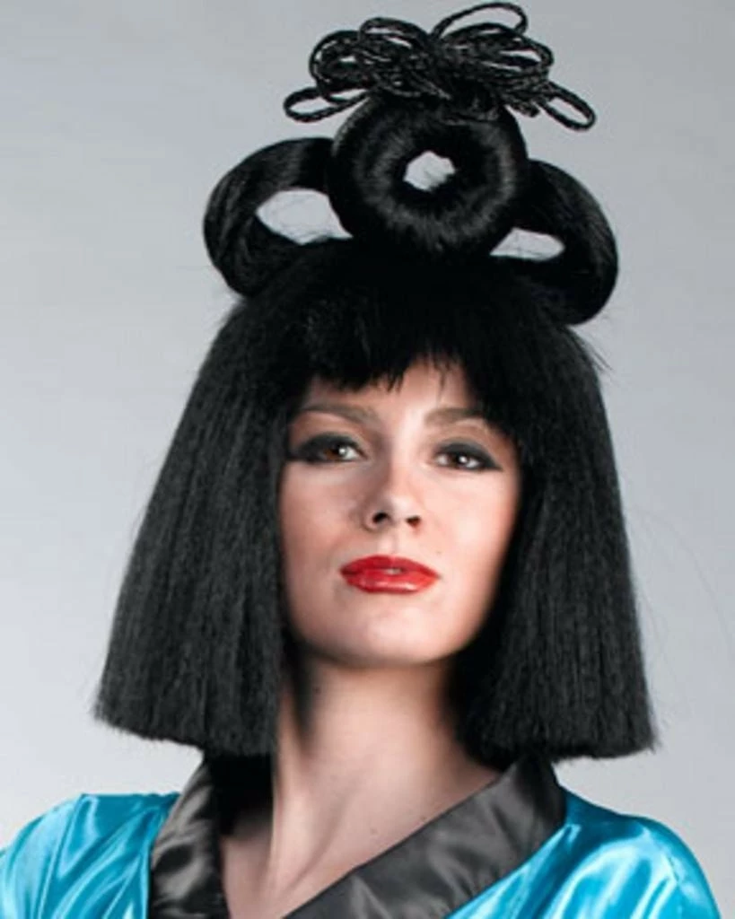 The Enigma Women’s Deluxe Geisha wig is available in black, which is designed very intricately. It is a costume wig defined on two divisions; with the base in straight form extending up to the nape, the part above it designed in a circular bow like structure that is topped beautifully. The Enigma Women’s Deluxe Geisha wig is made up of pure synthetic fiber that feels very lustrous and soft. The wig is quite light weight and covers the entire crown section. The design, style and comfort make it a perfect costume piece.