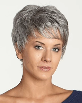 Frisco by Dream USA has long bangs with soft wavy curls and a tapered back.