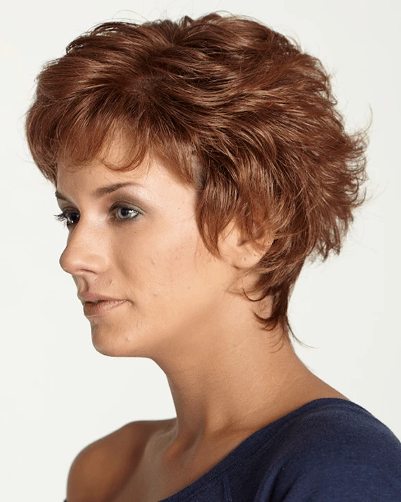 Taylor by Dream USA has a short, curly stacked back with layered curls on top.