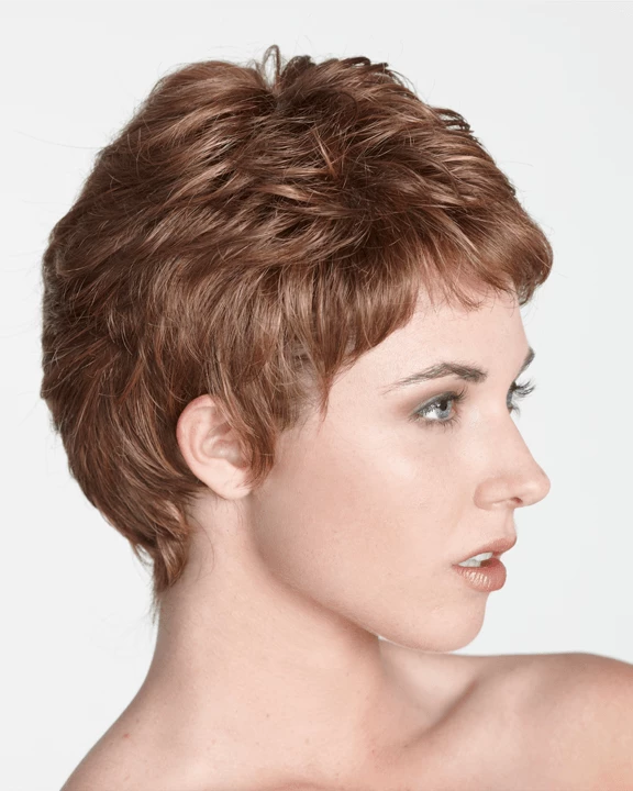 Vegas by Dream USA has loose curls on top with a straight but slightly tapered back.