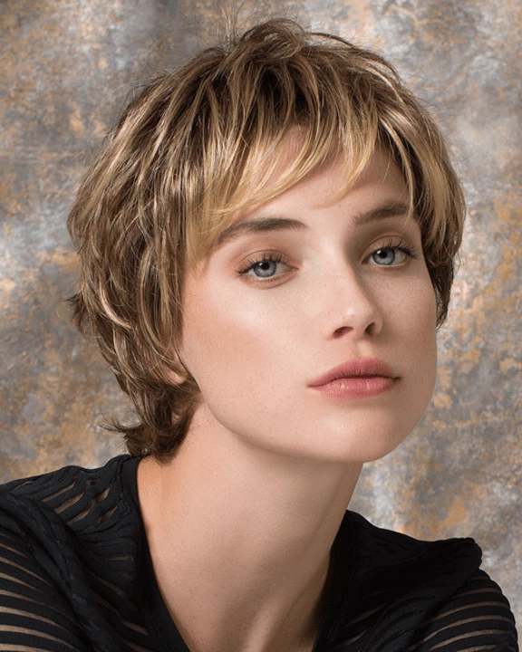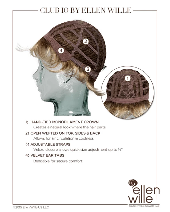 Club 10 by Ellen Wille is edgy, textured, and flips on the ends to create different looks. The monofilament crown is hand-tied and located where the hair naturally parts. The open wefted cap is designed to allow air to flow through, keeping your wig light and cool all day. This synthetic wig is expertly cut to bring out the most of the style and choppy layers.