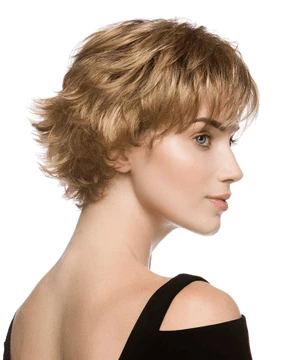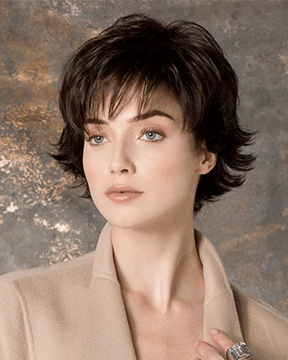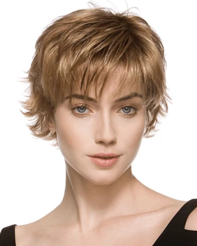 Date wigs by Ellen Wille is a short, textured and layered cut with a wispy bang and flipped ends. This flattering short wig features a monofilament crown, and is ideal for a large head size. The density of the ready-to-wear synthetic hair looks more like natural hair and requires little to no customization or thinning. Date is part of the Ellen Wille Hair Power collection.