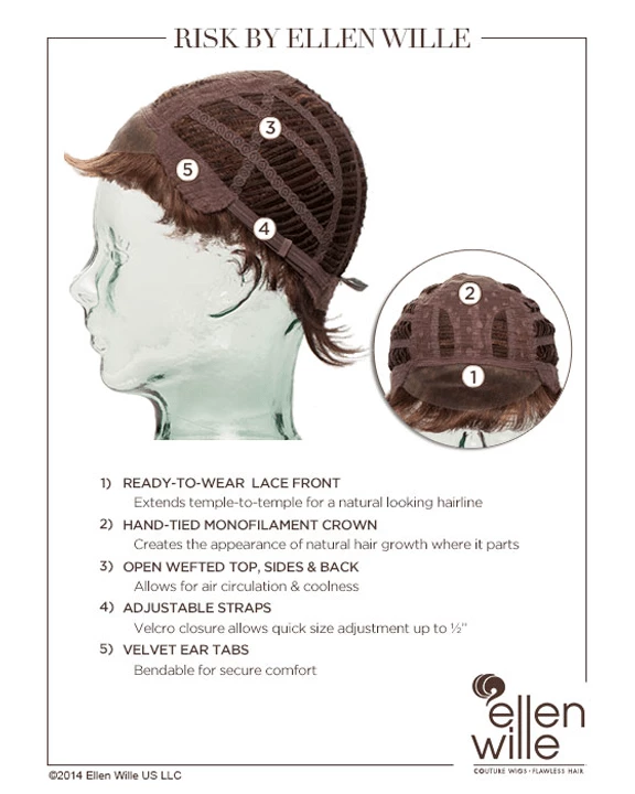Risk by Ellen Wille is a lightweight pixie cut with short bangs – it weighs less than two ounces! This wig features a lace front and monofilament crown, and is ideal for a petite to average head size. The density of the ready-to-wear synthetic hair looks more like natural hair and requires little to no customization or thinning. Risk is part of the Ellen Wille Hair Power collection.