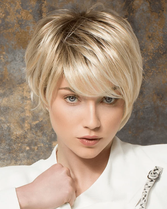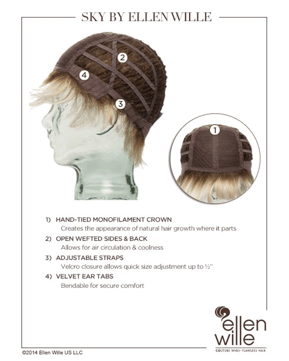 Sky by Ellen Wille is a short assymetrical style with flared ends in the back. This wig features a monofilament crown, and is ideal for a petite to average head size. The density of the ready-to-wear synthetic hair looks more like natural hair and requires little to no customization or thinning. Sky is part of the Ellen Wille Hair Power collection.