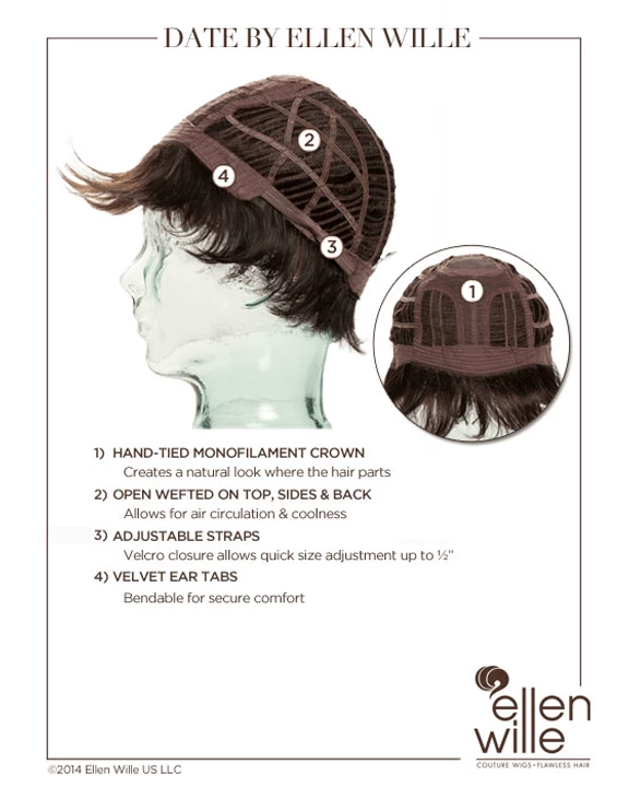 Date Large by Ellen Wille is a short, textured and layered cut with a wispy bang and flipped ends. This flattering short wig features a monofilament crown, and is ideal for a large head size. The density of the ready-to-wear synthetic hair looks more like natural hair and requires little to no customization or thinning. Date is part of the Ellen Wille Hair Power collection.