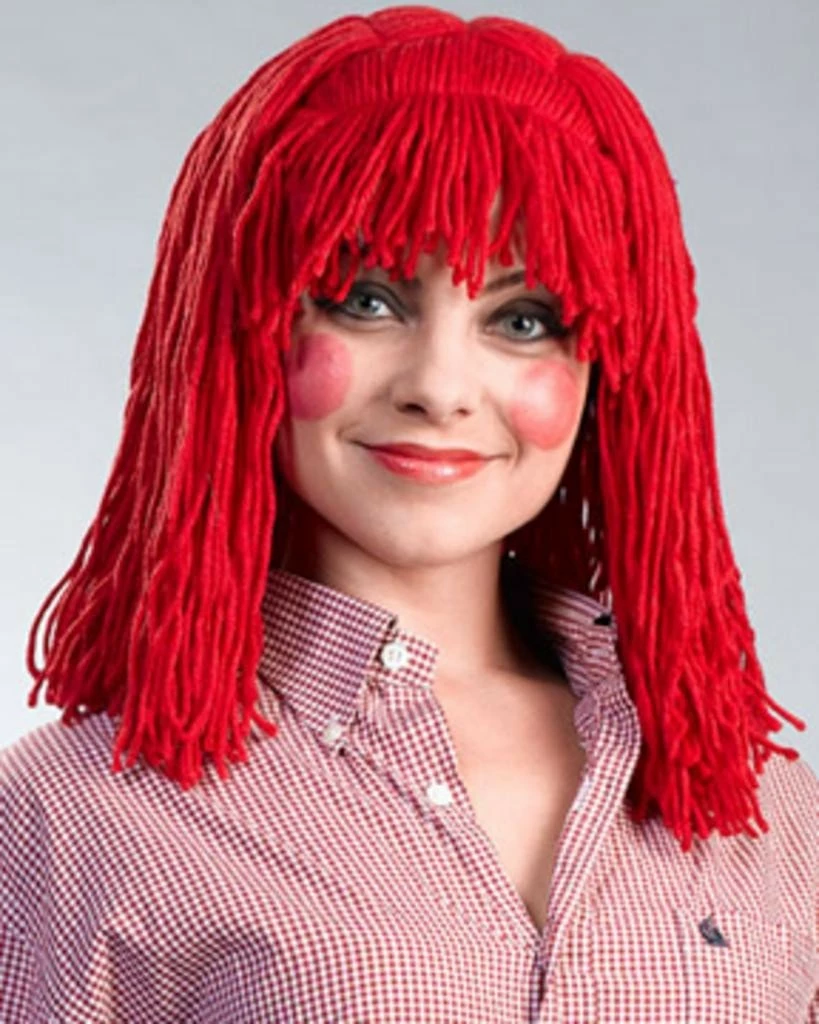 The Enigma Women’s Raggedy Cleo wig in red yarn is an enticing piece from the women’s collection. The Enigma Women’s Raggedy Cleo Wigs are available in an average cap size with the hair falling up to the nape with fringes at the forehead. It has been previously styled for instant application without any hassles. The entire piece is very lustrous and soft. It covers the entire crown liberally imparting a very stylish look.