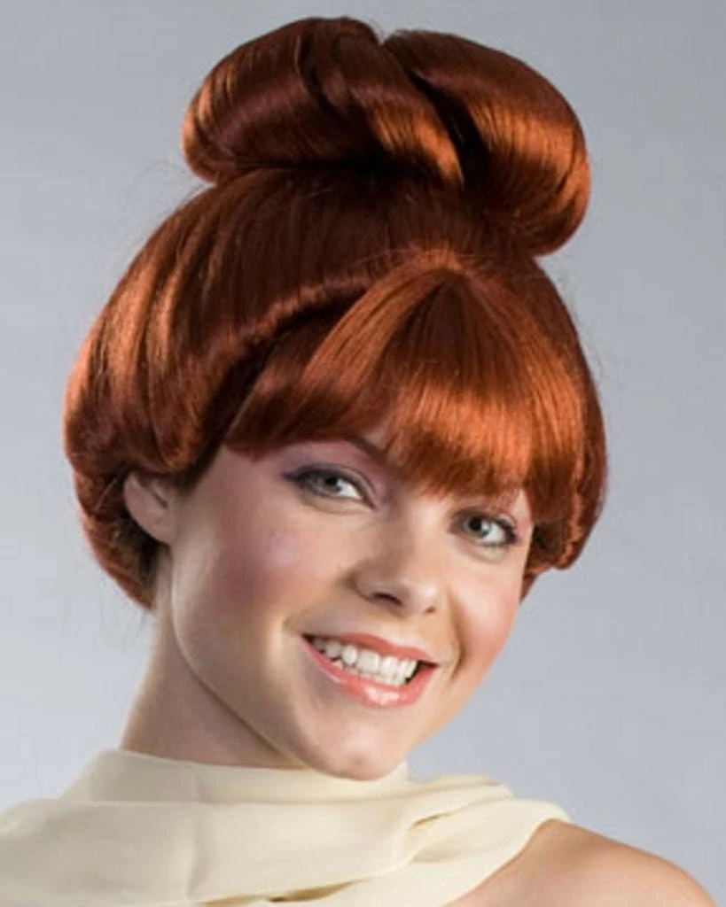 Wilma Flintstone by Enigma. Comes in auburn as shown styled in a top bun