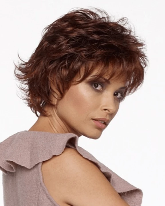 A fashion forward layered shag style. Fluff it up or comb in closer for a more subtle appearance. From spiky to softer this mid-length style is designed to compliment many age ranges.