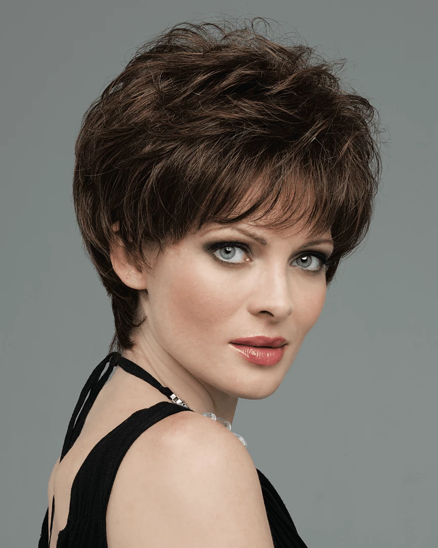 Aubrey by Envy features the latest in heat friendly fiber with its unique blend of 30% human hair and 70% synthetic fiber. Envyhair was developed to give a high tech alternative to human hair products. The fiber itself allows usage of most heat appliances up to 210 degrees with moisture controlled properties that will allow your style to last all day. Brush, style and comb with ease. Envy hair behaves naturally while maintaining the feel and texture of human hair. Aubrey is constructed with mono top and hand-tied sides and back. With the hand-tied features through-out, you never need to worry that anyone will know that you have anything but fabulous hair!