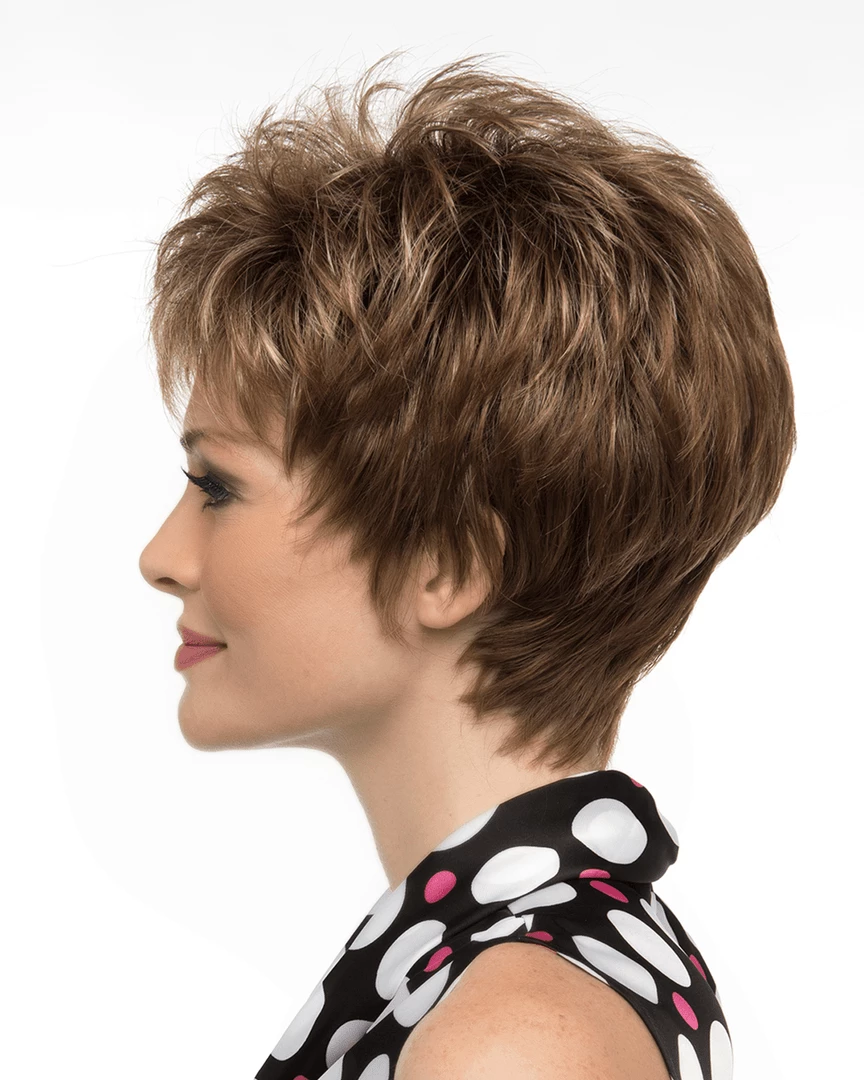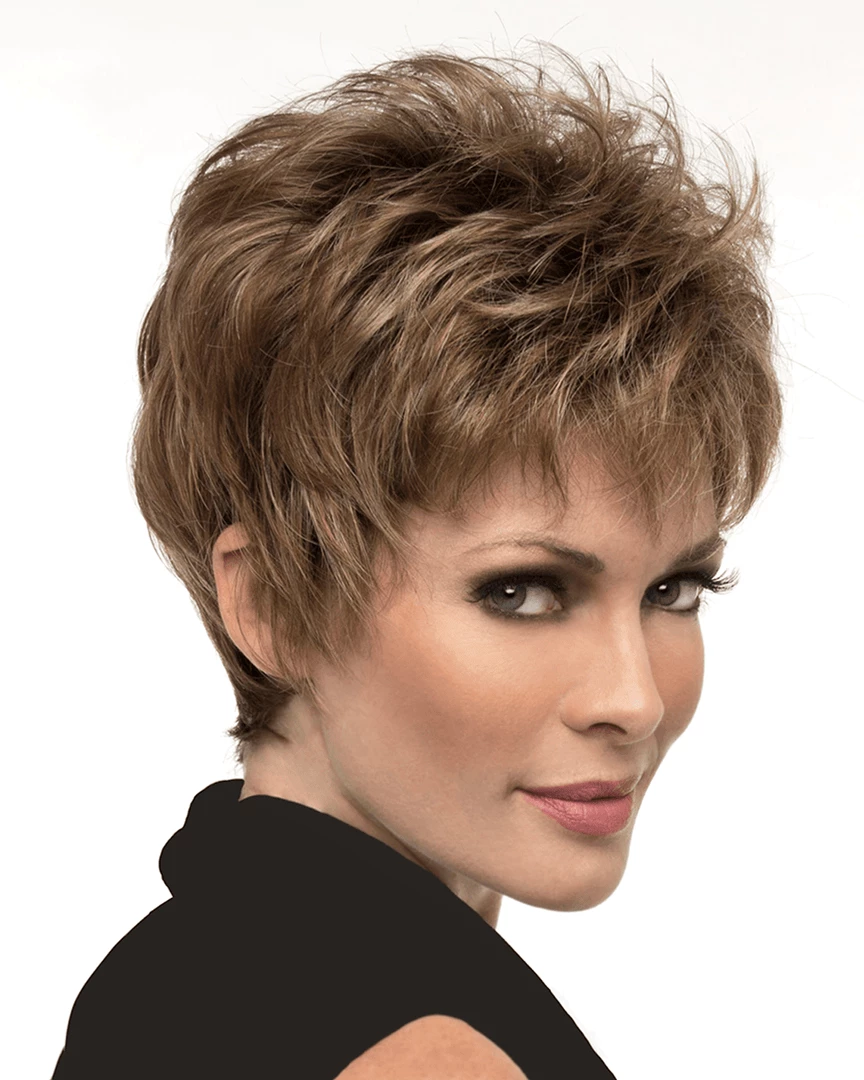 Jacqueline by Envy Wigs is a modern pixie that is short on length, but generous on volume. Jacqueline has dreamy, wispy bangs and the perfect layering to accentuate one’s cheekbones.