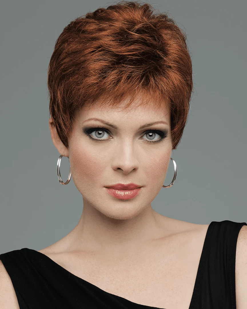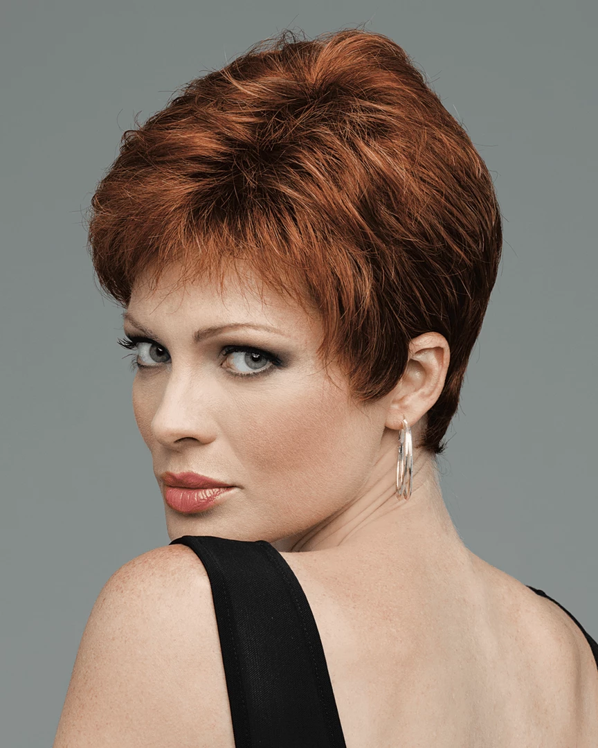 Jeannie by Envy offers fully hand tied features with mono top construction, lace front technology and hand tied sides and back. This chic pixie cut offers styling flexibility with its sophisticated silhouette. Comb this style to the side or off the face and create your own unique fashion statement. Lightweight and fashion forward elegance from Envy Wigs.