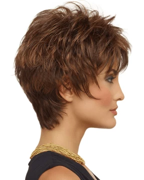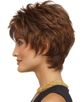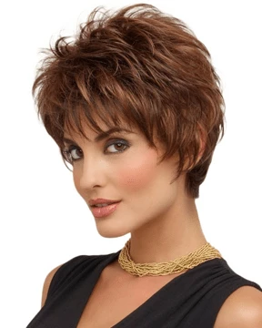 Kitana by Envy is spunky, textured and exhibits layers galore! With its tapered extended nape Kitana offers a soft hugging neckline. Razored edges that frame the face give that deconstructed styling for today’s style conscious women. Mono top construction allows flexibility is styling so that you can add a little lift with your favorite styling products or comb it from side to side to suit your individual needs.