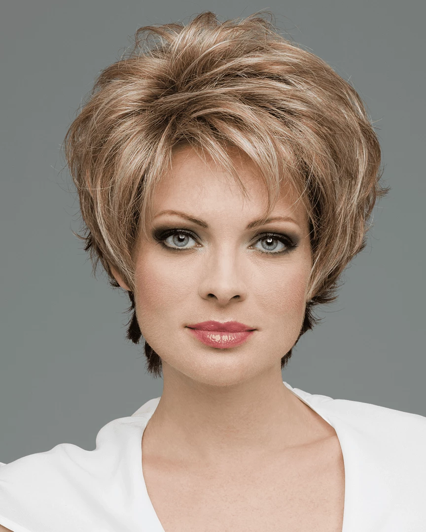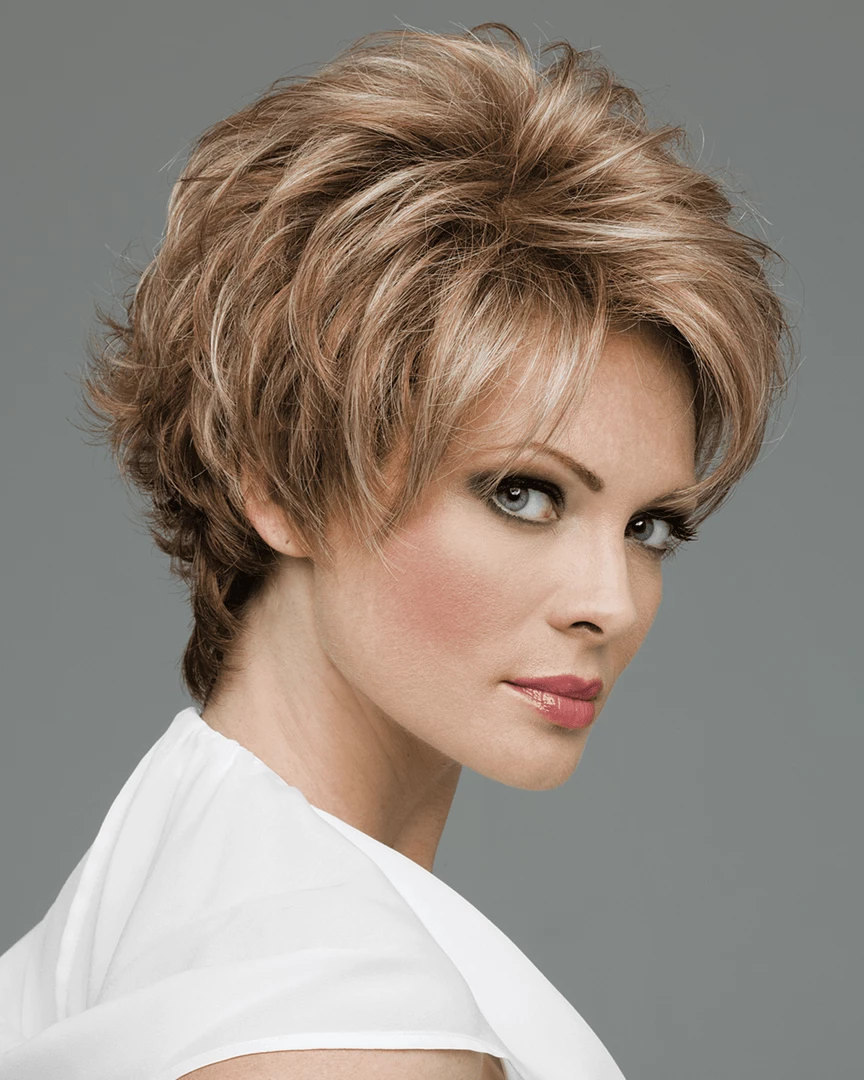 Micki by Envy offers lace front technology and mono top construction for this lightweight fashion statement. Soft layering with razor soft edges flip out to give a spunky textured appearance. Style this back or off to the side to create your own unique style with a natural hairline that is unsurpassed in lace front workmanship.