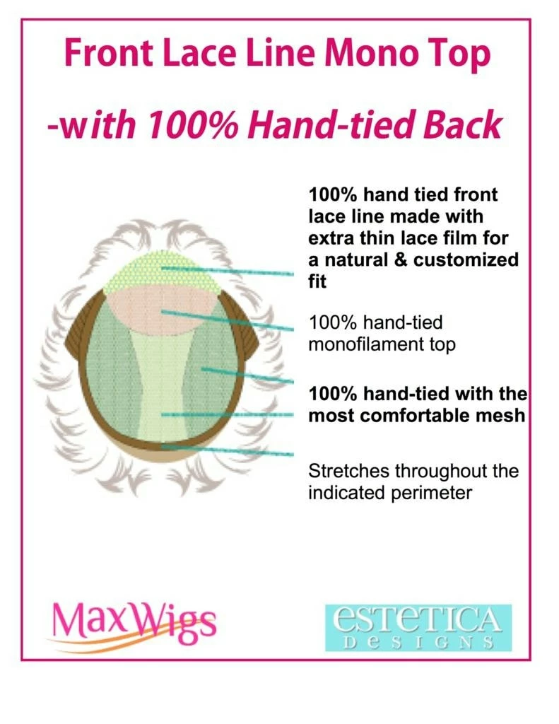 Celine by Estetica Designs is a mono top wig made with 100% handtied back. Made with remi hair.