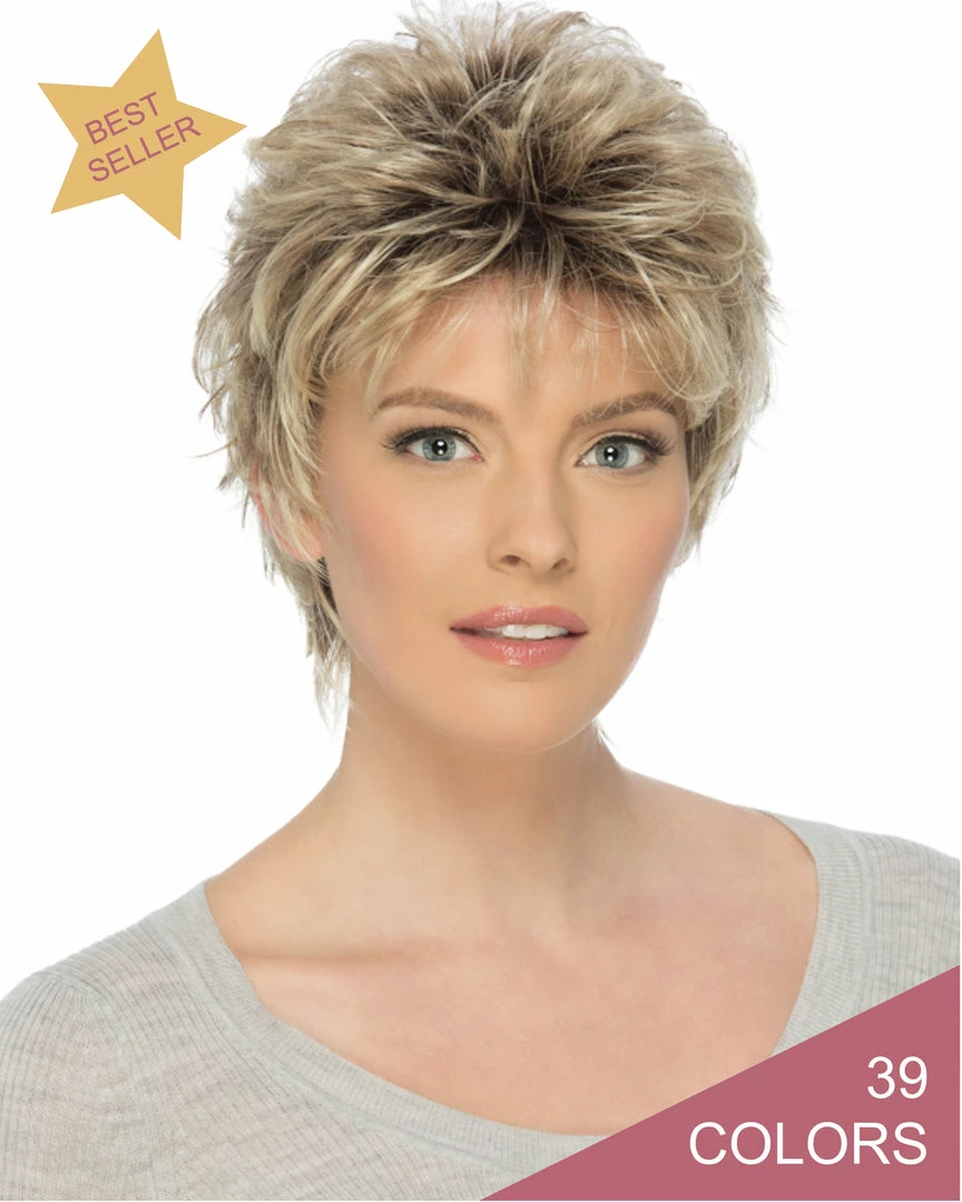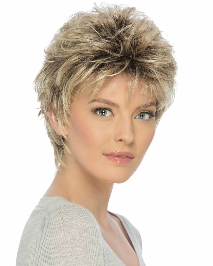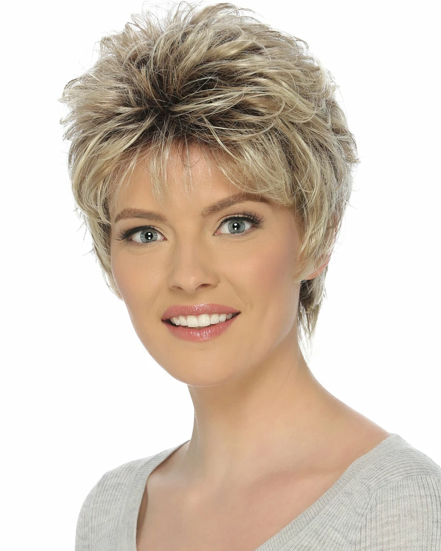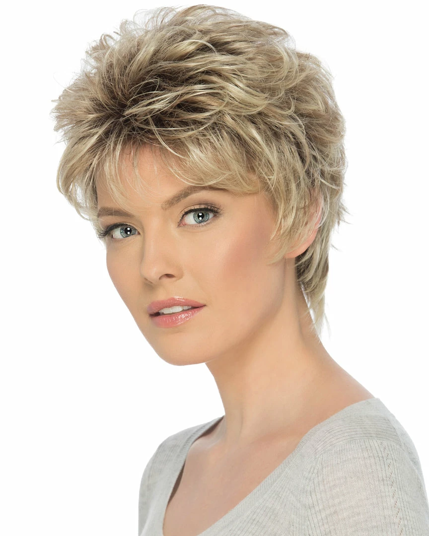 Christa by Estetica Designs is made with loose in and out curls, cut in a slight shag style.