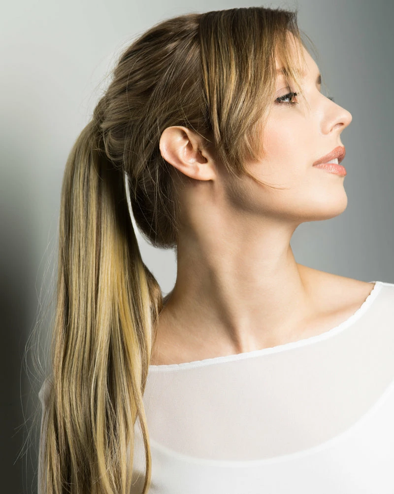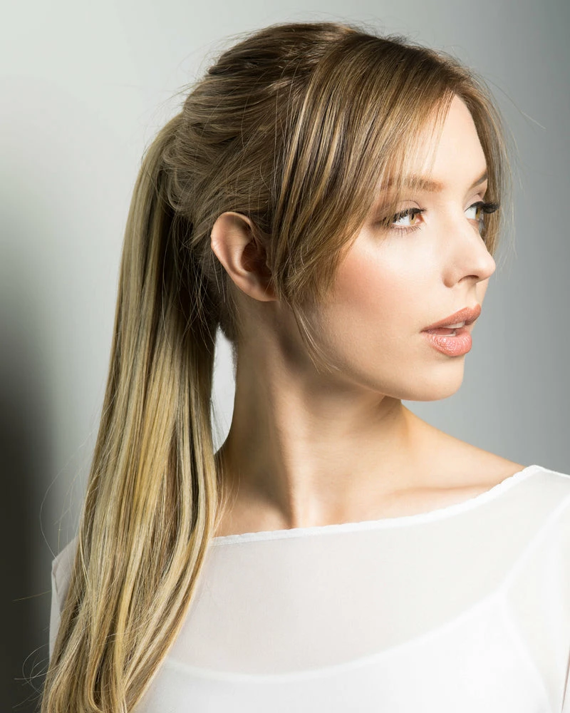 The 18″ Pony Wrap is a beautiful extension to any ponytail. Made with heat resistant fibers. Just wrap around and clip.