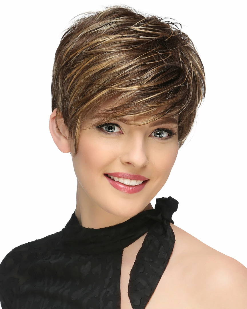 Jett by Estetica Designs. Have fun with Jett, a bold, asymmetric pixie featuring a sheer lace front. Subtle layering allows for natural movement, so you can muss her up for a sleek and edgy look or keep it soft and simple.