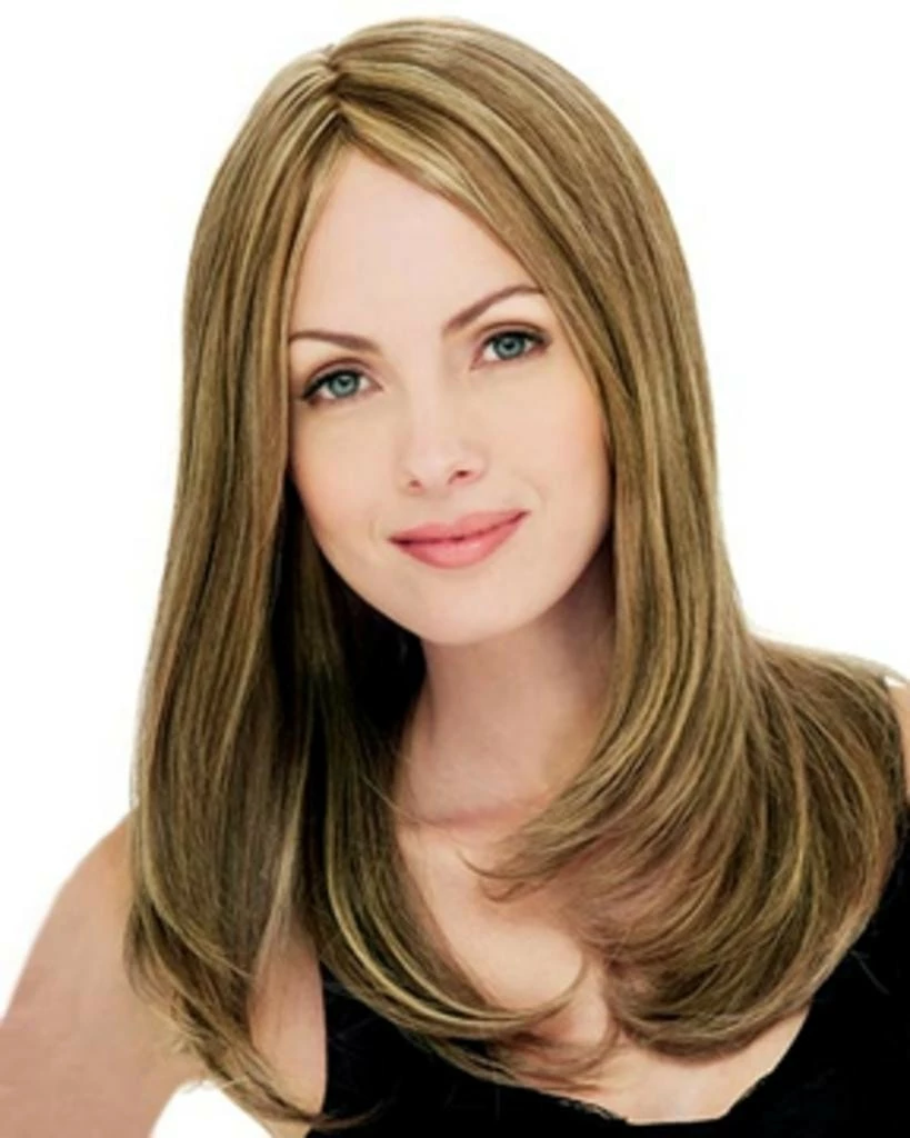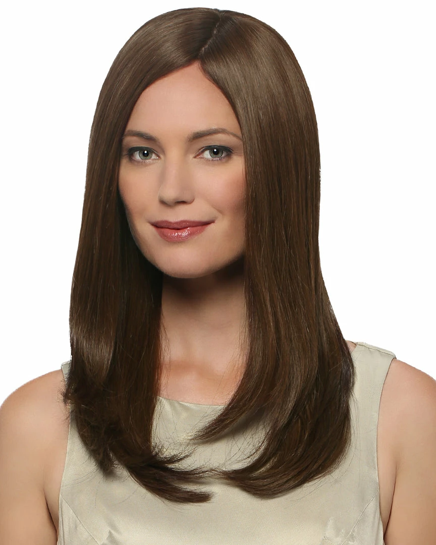 The Treasure wig by Estetica Designs is a french part Mono Top with 100% hand tied back. Simple yet sleek, Treasure is a long, straight, layered style. Her cap features a French part mono top specially constructed with a unique hand-tied interior that eliminates any visible knotting, so you can style her as you wish.