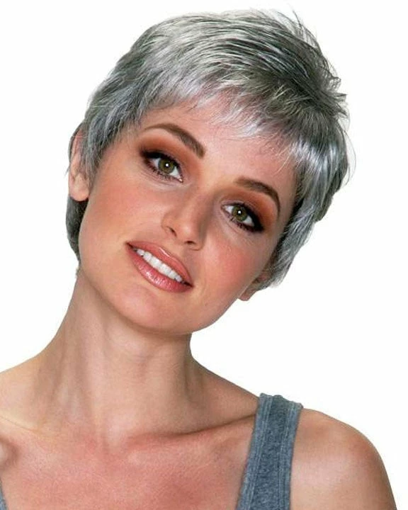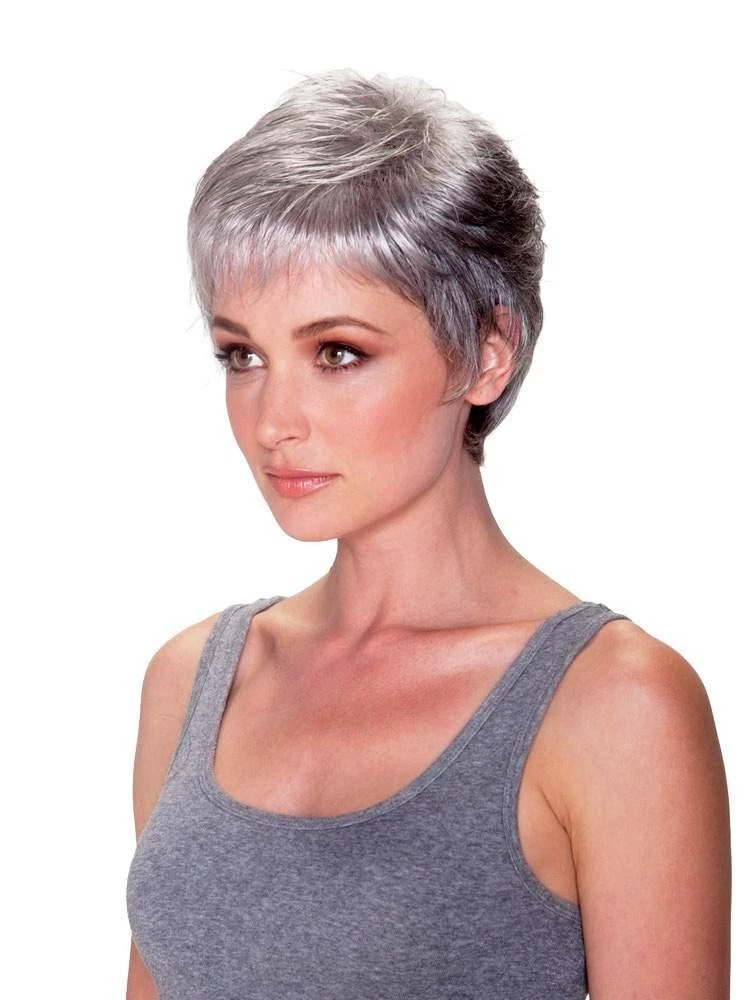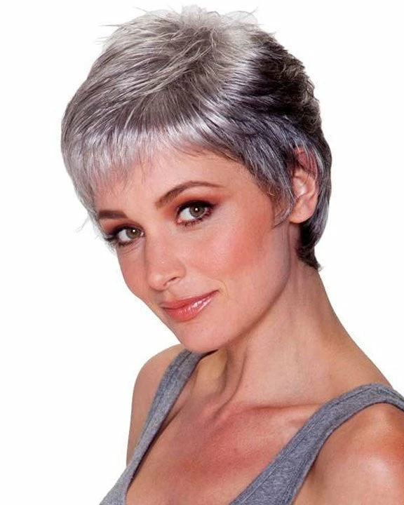 Feather Lite Monofilament wig by Belle Tress in a partial monofilament design. This partial monofilament uses a thin and breathable lace on which hair fibers are woven. A classic petite cut with an ultra light-weight feel. This wig evokes a modelesque minimalism for a simple clean expensive look.