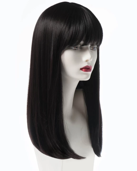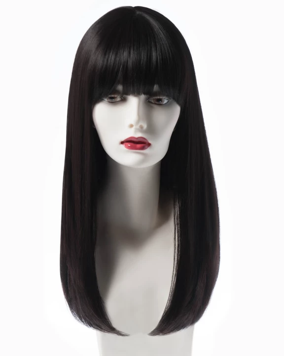 Perfect Silhouette by Forever Young is as uper sleek style with slightly layered and rounded ends. Has full bangs with a center skin part. The heat-friendly synthetic fiber can be styled with heat-based tools.