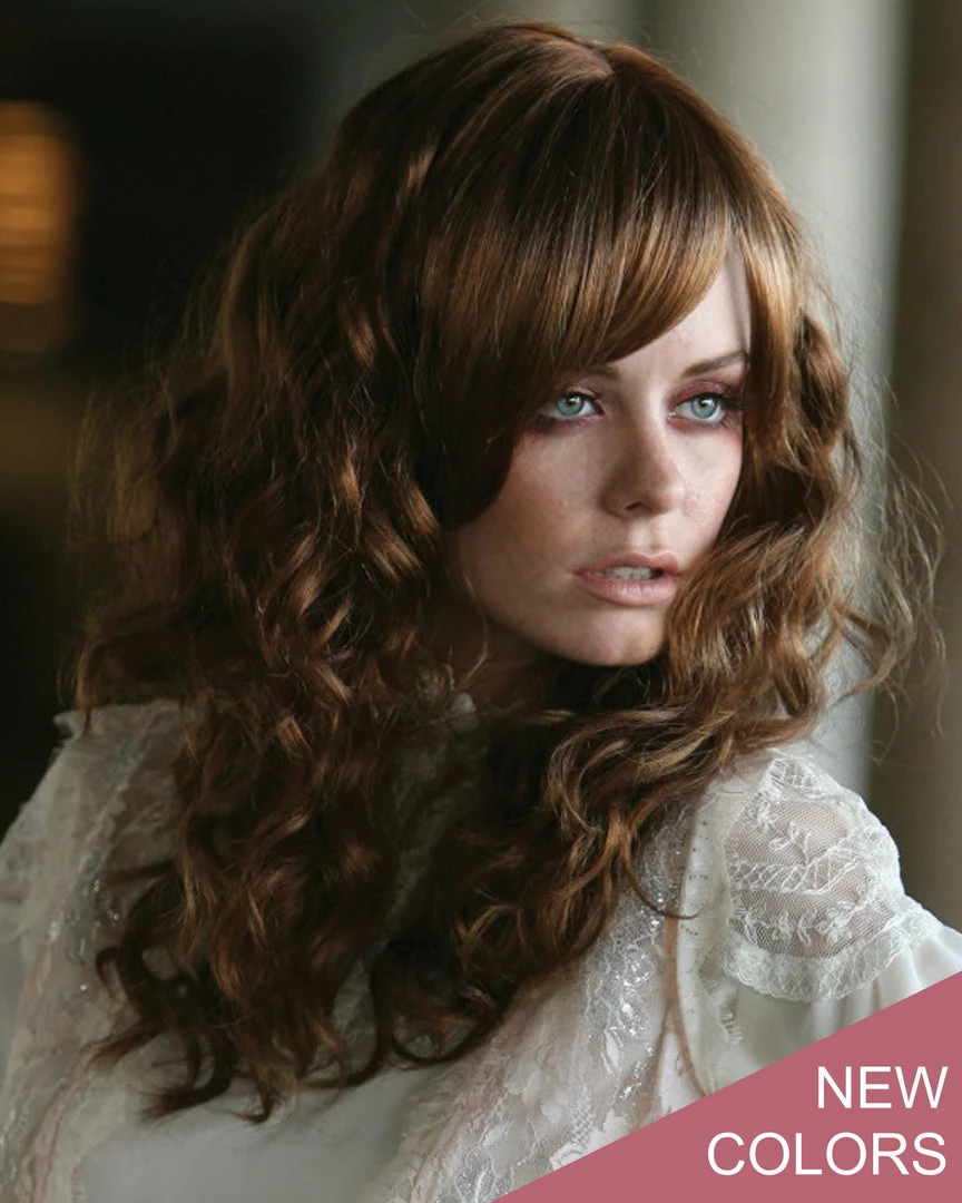 Roll With It features long, full-body hair with dazzling volume. Full layered curls all around and bangs which you can part, create an elegant, fashionable look. Like all Forever Young Wigs, Roll With It is made from 100% Kanekalon Heat Friendly hair fiber and includes simple care instructions.