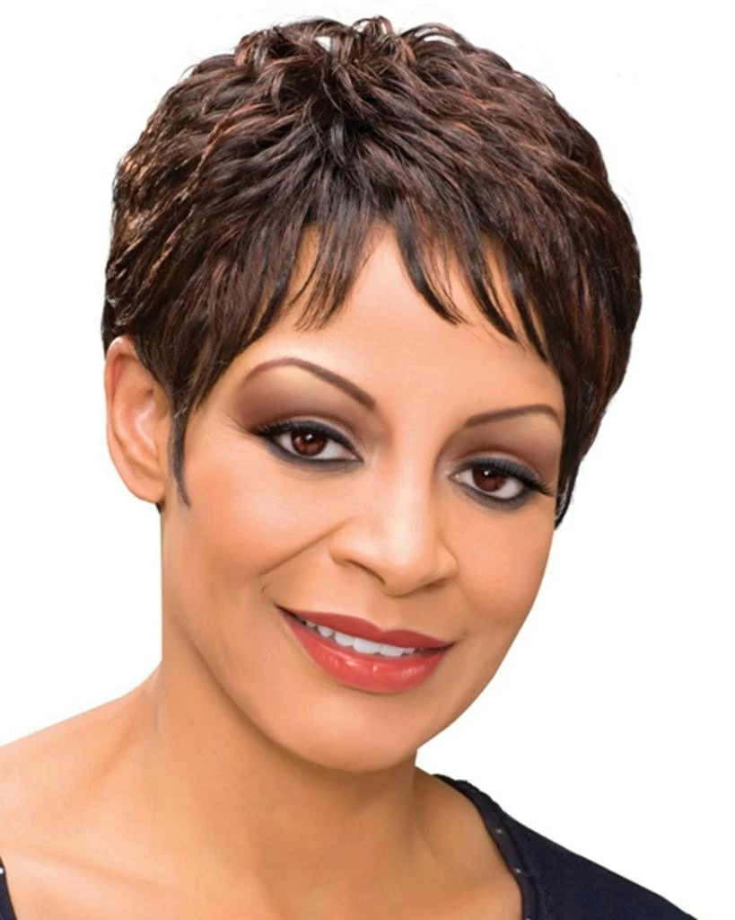 Etta is with premium synthetic fibers for lightweight comfort. Machine-stitched cap fits secure and looks fabulously natural.