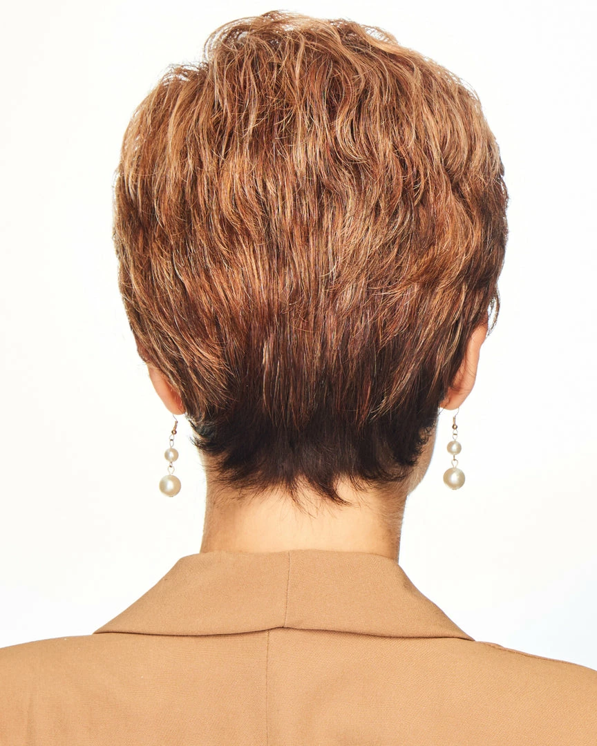 Acclaim by Gabor is a lightweight wig with short, waved layers beautifully blend to a neck-hugging, tapered nape. Available in multiple cap sizes! Features include a hand-tied hairline, open ear tabs, and an open extended nape. Also available in gray colors, beautiful shades of grey!