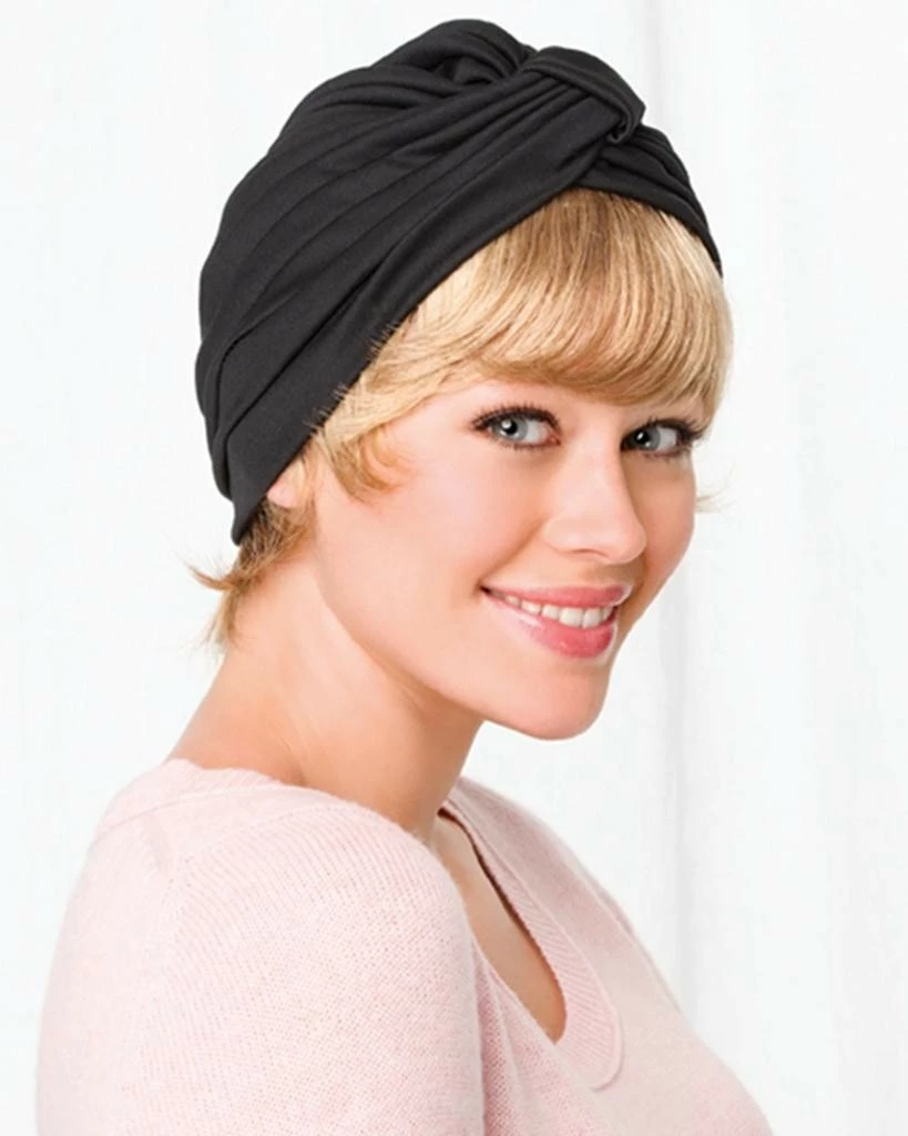 The Halo hair accessory is the perfect complement to any turban. A velvet-lined circle of hair, each Gabor® Halo includes two strategically placed Velcro® strips with a glue strip for easy and secure attachment to any turban. For affixing a halo to a terry cloth turban, simply remove the top strip of Velcro®. The teeth on the bottom strip will adhere easily to the terry fiber. If you choose a polyester turban, use the glue strip on the back of the top Velcro® strip to easily attach to any smooth textured turban.
