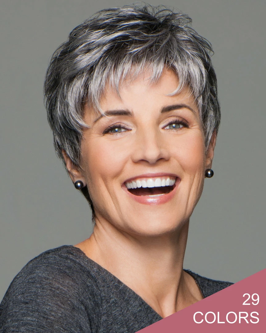 This barely-there, easy care fashion cut includes a hand tied top for light, cool comfort and a sheer scalloped hairline for off the face styling. Wear it tousled or tailored, this versatile cut redefines cool and easy styling.