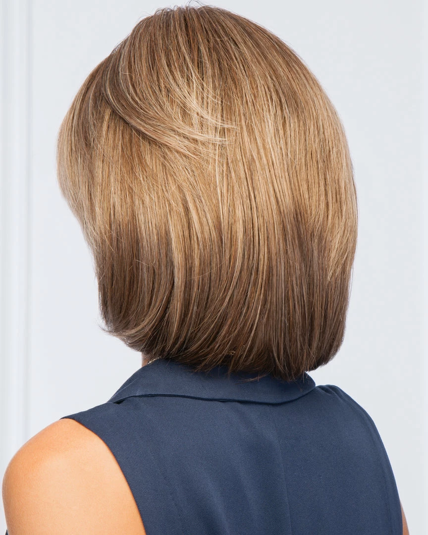 With a hand knotted top for varied styling options and a sheer lace front for a life-like hairline, this precision crafted collar length page includes razor tapered bangs that can be styled full or off the face.