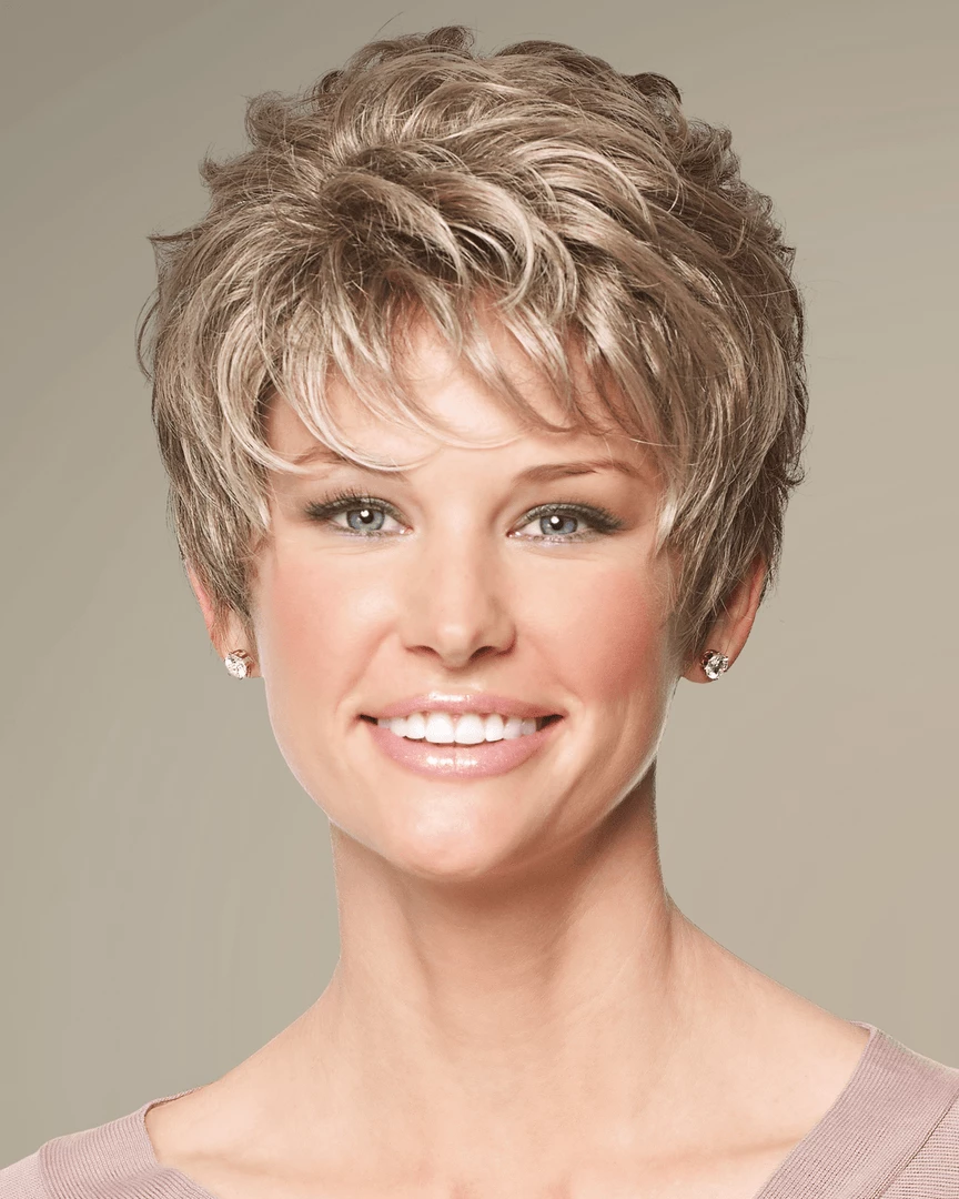 Short, waved layers beautifully blend to a neck-hugging, tapered nape. Available in three cap sizes.