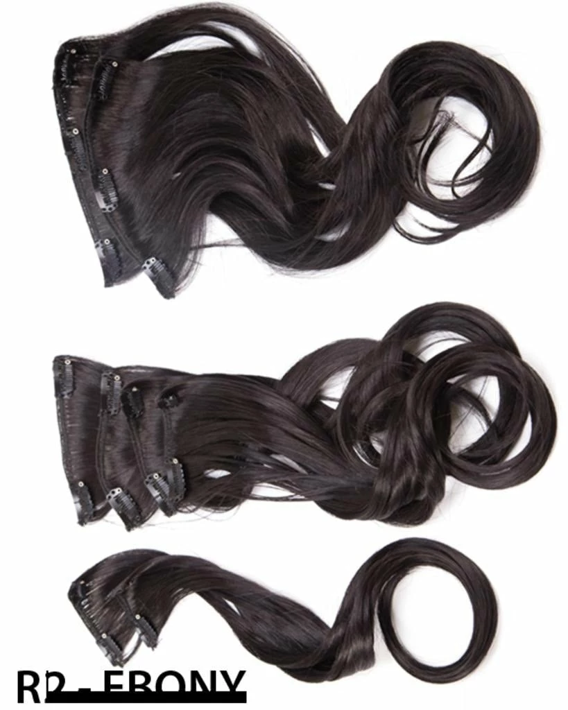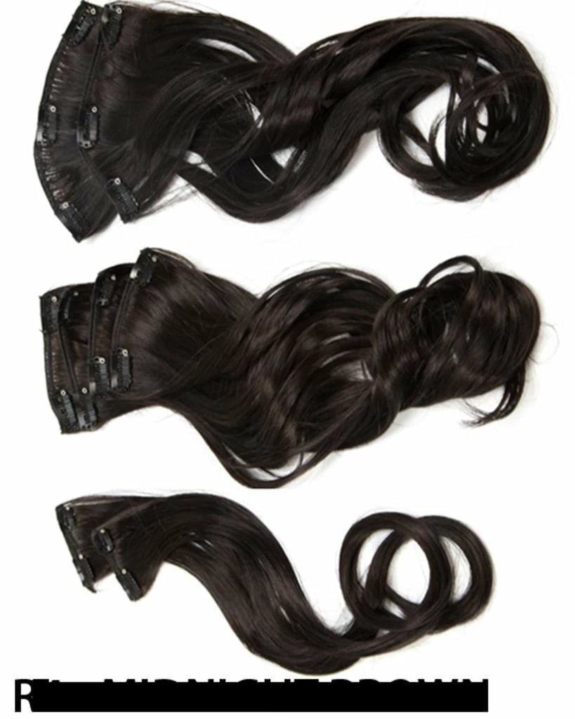 The 18″ 8 Piece Wavy Extension Kit by Hairdo includes eight 18″ long clip-in hair pieces of varied widths for added length and volume. Style the Tru2Life® Heat-friendly synthetic hair with heat tools to curl or straighten. Use as many or as few of the pieces as you want to create different looks.