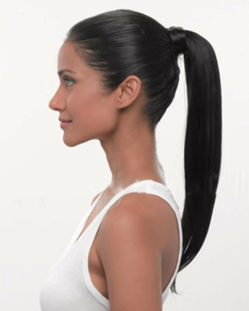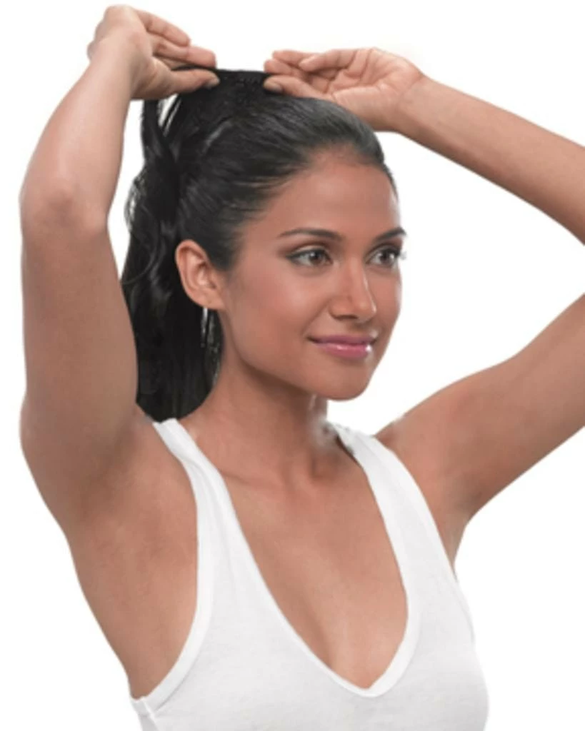 Get a thick, natural looking hairstyle in a snap with Simply Straight Pony by Hairdo. It is an 18” long ponytail which is made of heat defiant fiber and hence can be heat styled to create different looks. Flat iron it or add wavy texture to match any occasion. You can place it high, low or to the side to create different styles. A strip of hairwraps conceals where the ponytail meets your hair. Enjoy the beautiful ponytail looks in seconds with Simply Straight pony!