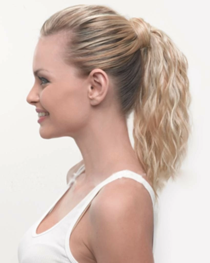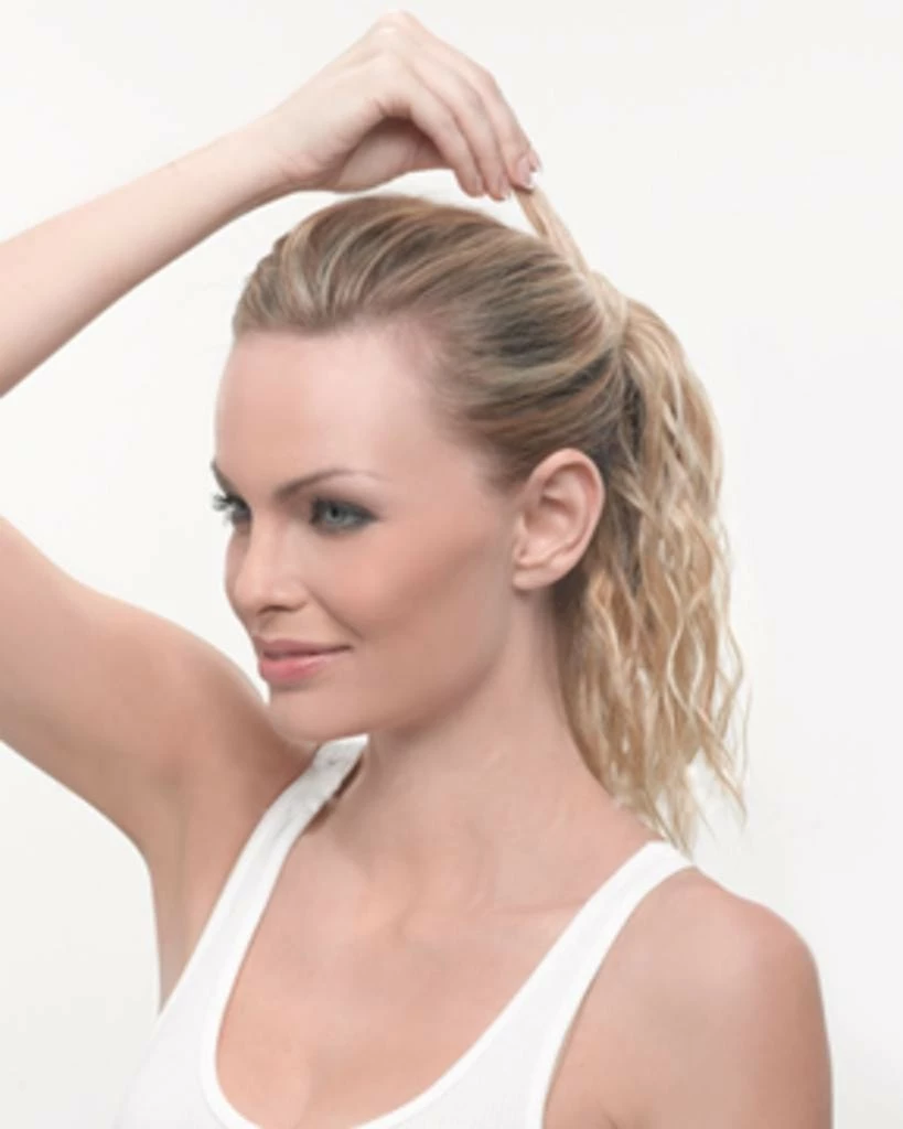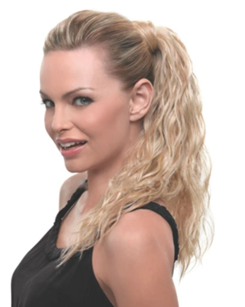 This 18″ long wrap-aroung pony reflects the latest salon trend toward soft, tousled beach hair waves, and the wrap-around provides a totally polished look.