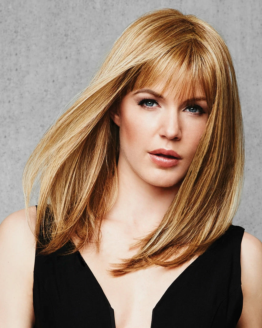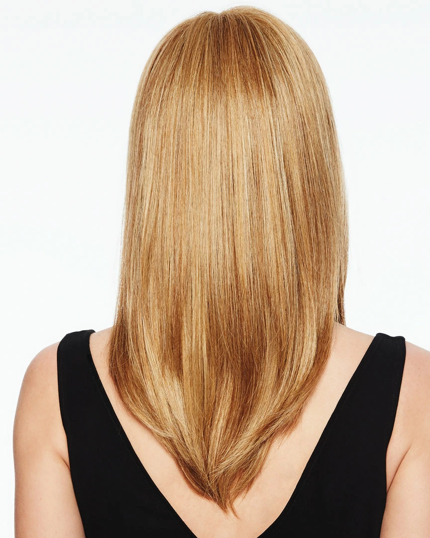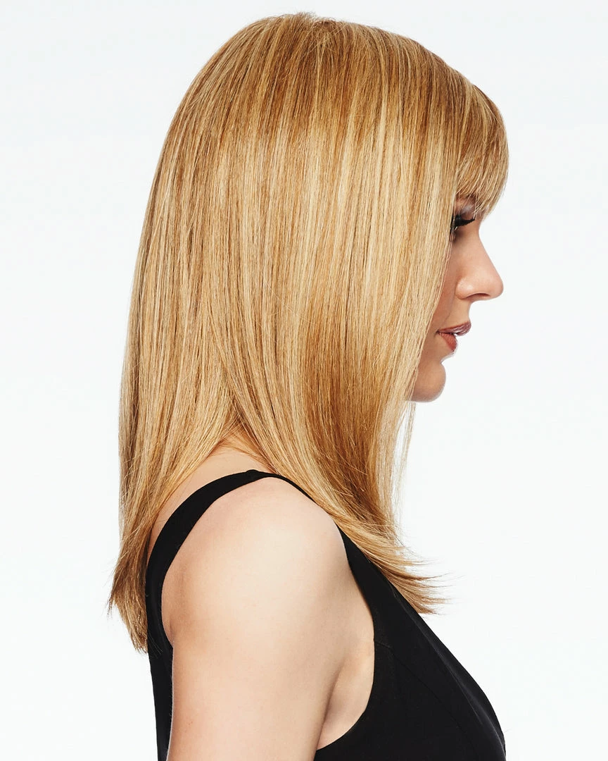 Long and Straight wig by HairDo. One of today’s top hairstyle trends with below-the-shoulder length, razor-tapered layering at the ends for natural movement, plus a feathered eyelash bang. A look that’s impossible for many women to accomplish on their own due to fine, fragile hair, or without the effort and damage of flat ironing. Hairdo not only makes it possible, they make it effortless.