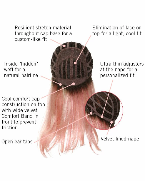 We can’t promise you won’t stand out with this pop of pink. These classic layers are anything but ordinary. The dark root adds contrast and makes it look like you spent hours in the salon chair. The Tru2Life heat-friendly synthetic fiber can be styled curly or completely straight. With a comfortable cap design you can wear it for a night out or even all day. Pinky Promise will have you lying about who did your hair color.