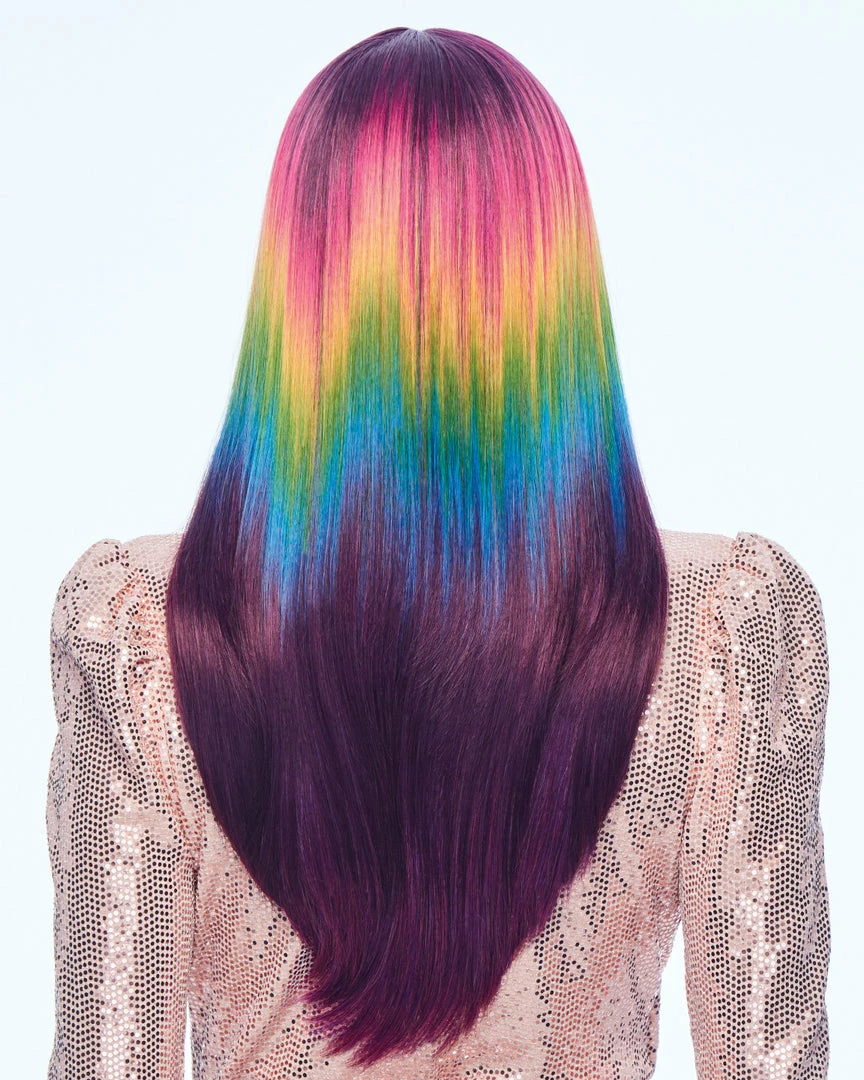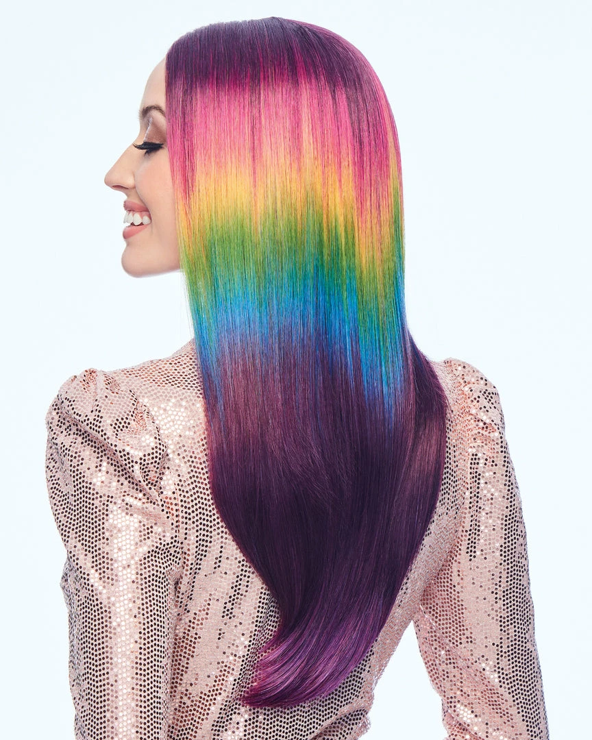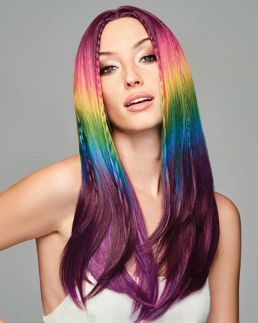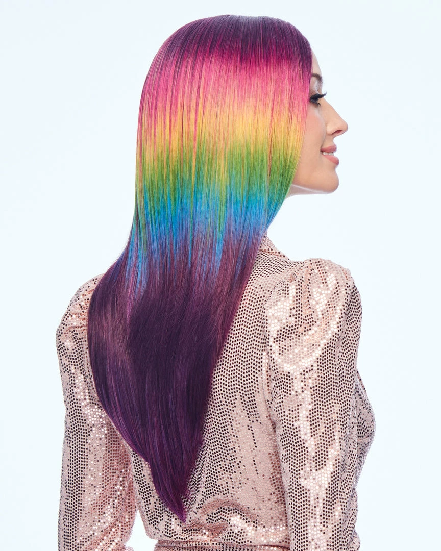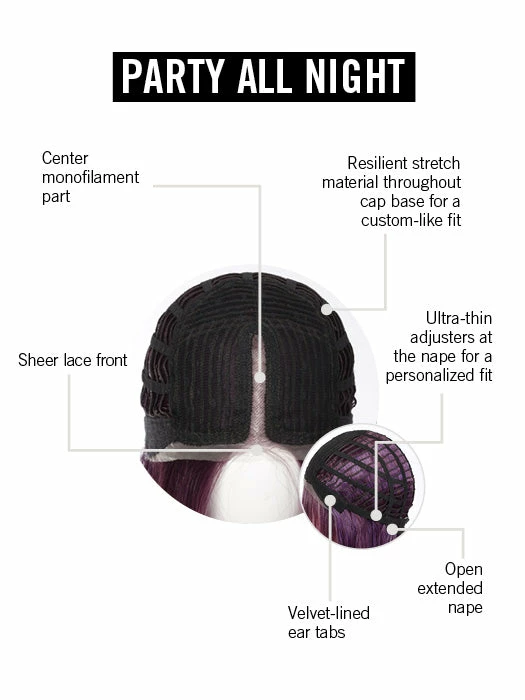 The Party All Night Wig by Hairdo. Let’s get this party started! When the sun goes down, this dream ‘do is ready to rave! A prism of iridescent colors shimmers against a deep purple base. The monofilament center part and lace front hairline make the look totally natural. Rock it straight or wavy with heat-friendly Tru2Life fiber.