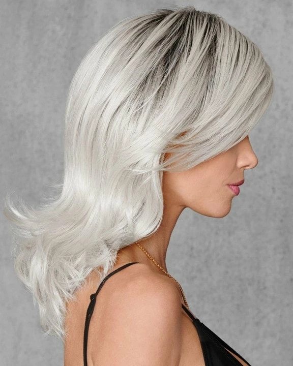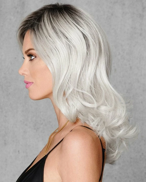 Wow in this wickedly white wig. The classic mid-length hairstyle is updated and made edgy with a silver white base and darker roots. Add your personal style to this cut by styling it curly or straight. The open wefted cap keeps you comfortable while you rock these locks.