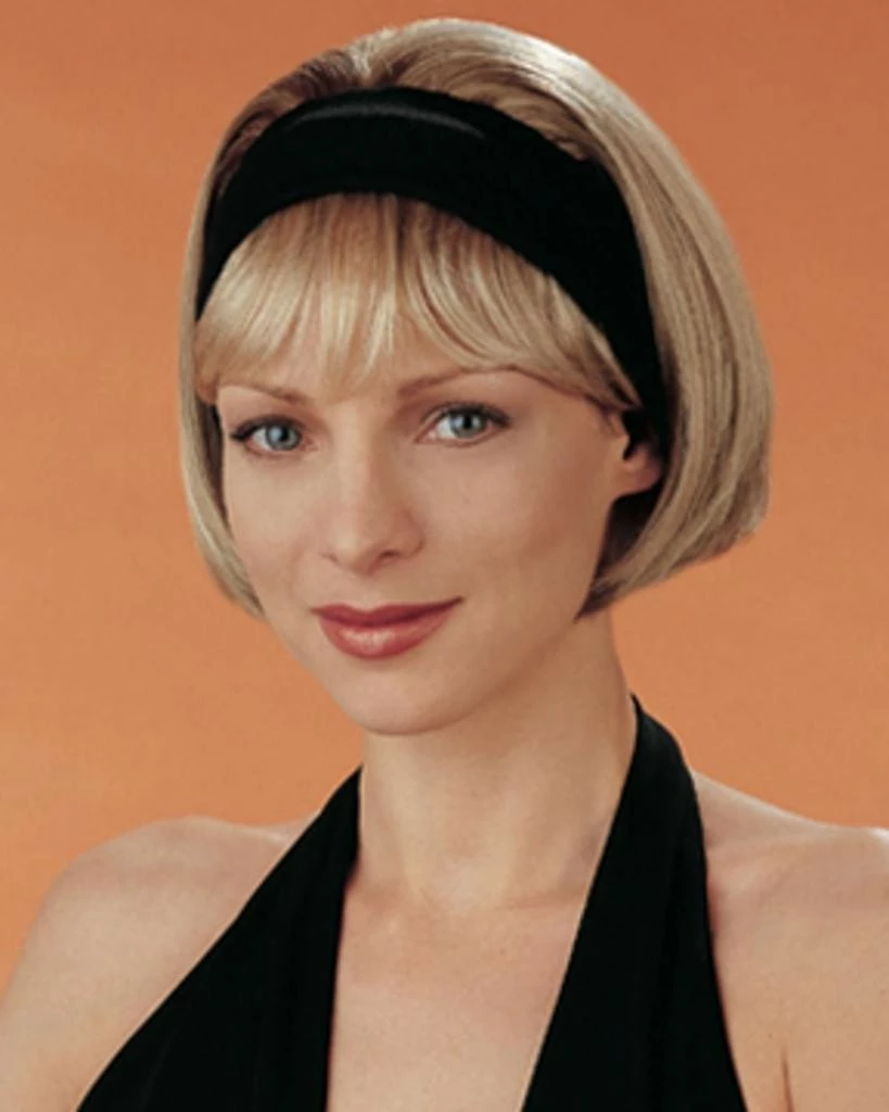 A medium styled bang that has velcro which allows the Bang to easily attach to all Band hairpieces and other headwear. Includes Bang Only