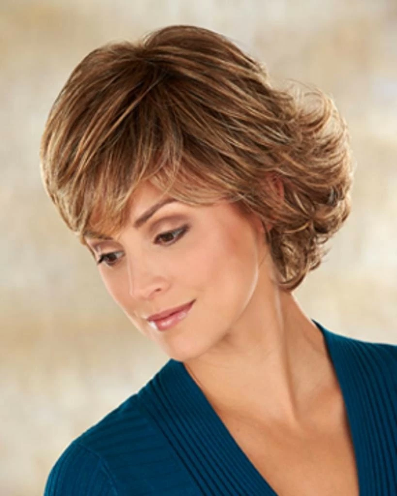 Gabby by Henry Margu is a layered chin length style with flipped ends and side swept bangs. Henry Margu Gabby wigs feature a featherlight cap construction using ultra-thin weftings throughout the cap. Exceptionally cool and comfortable to wear, a featherlight cap makes the most comfortable machine made wigs available. The Gabby wig comes in Henry Margu’s exclusive highlighted (H) and gradient (GR) colorations. Adjustable tabs at the nape and contoured ear tabs provide additional comfort. Gabby is available in “highlighted” colors that provide a traditional method of a darker base color with lighter highlights creates an amazingly natural appearance.