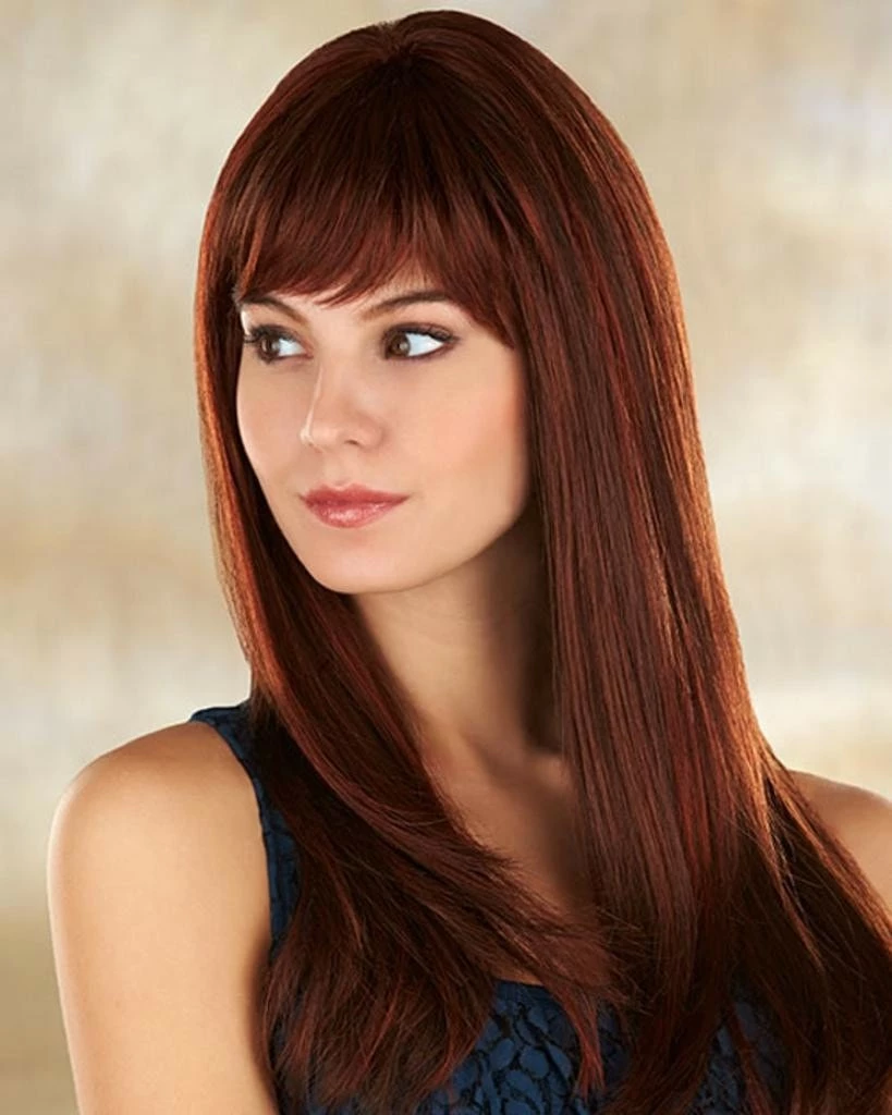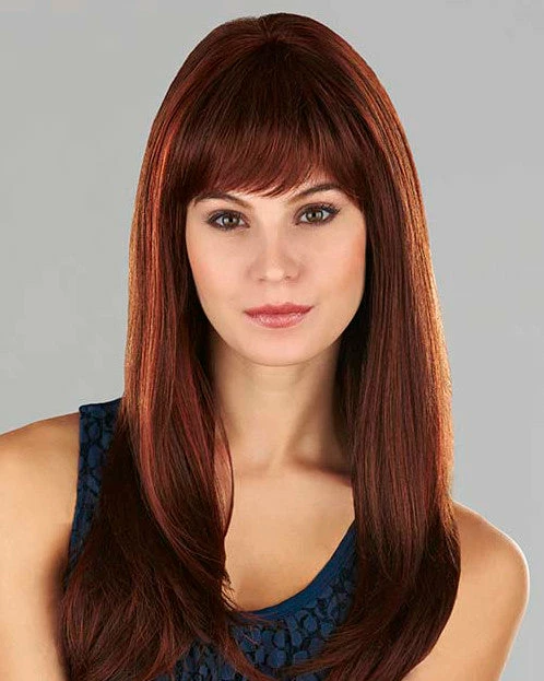 Celine by Henry Margu, with face framing bangs, has smooth long layers that fall well below the shoulders. Henry Margu Celine wigs feature a mono area in the top area of this machine-made cap. Extremely sheer mesh is used for the transparent base that creates a realistic looking scalp area which is hand knotted with individual fibers to simulate the appearance of natural hair growth.