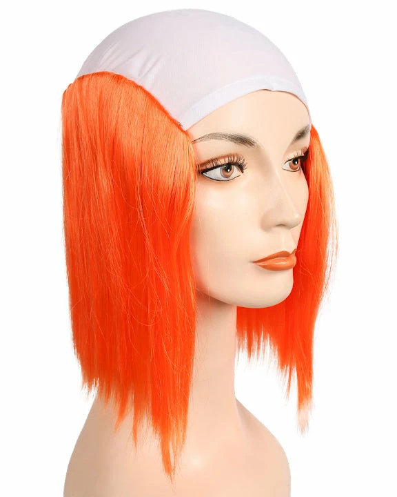 Cloth stretch front and professional looking wig. Can be brushed out for Pennywise from “It” the movie.