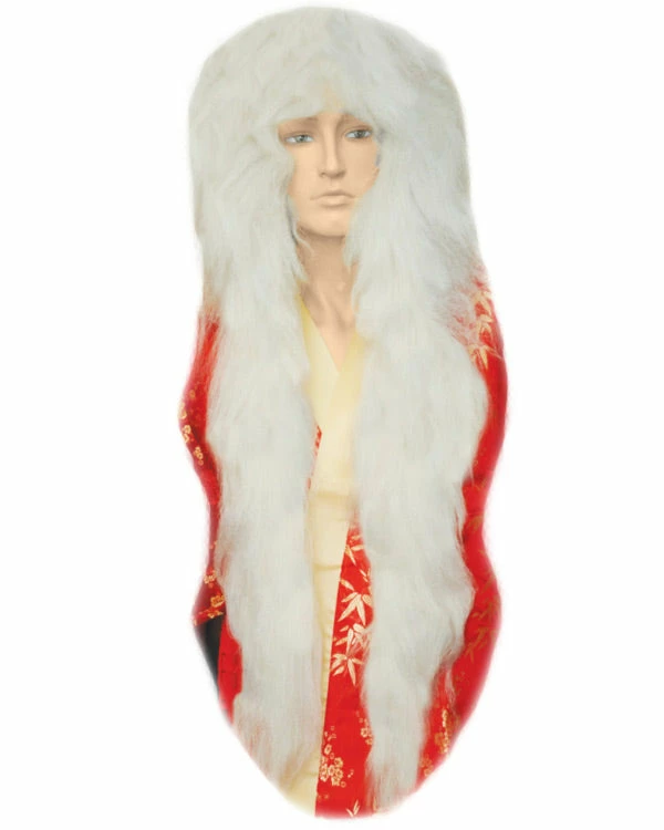The Bargain Kabuki Japanese Oriental Theatrical is a very long white synthetic costume wig, made with a less expensive fiber. LW227