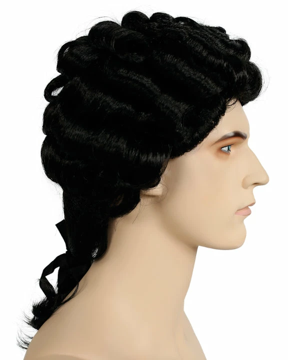 Barrister Colonial British Man. The Barrister wig is for english court scenes or an alternative colonial style. It has a short curly top and braids in the back. LW747