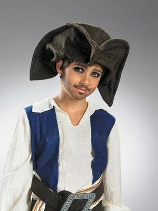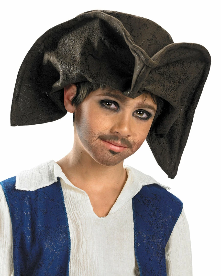 Jack Sparrow Pirate Hat Child. Look just like a real pirate with this officially licensed Pirates of the Caribbean Pirate Hat! Brown polyester pirate hat in a tricorn style has a wired edge that can be shaped as you like. Looks like distressed leather! Great addition to your Jack Sparrow costume! One size fits most children.
